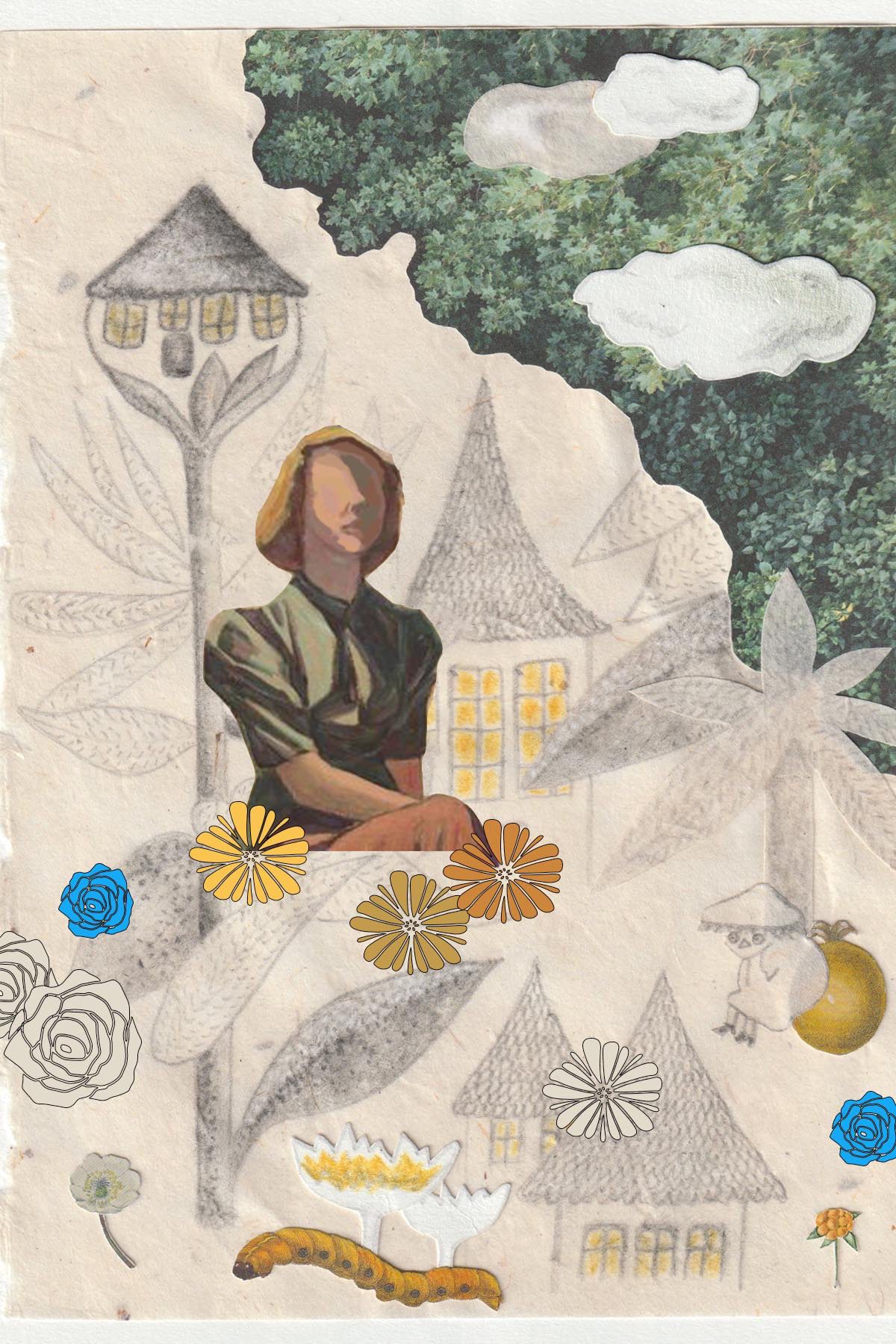 Analogue sketch and collage mixed with digital technique in Photoshop.